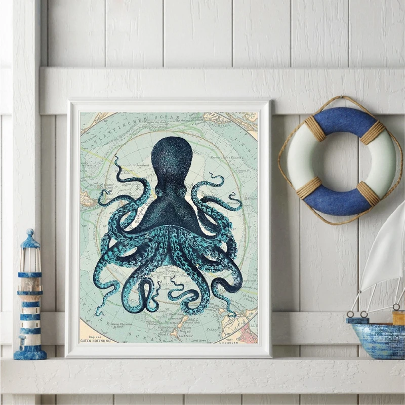 Kraken Octopus Tentakels Vintage Poster Prints Nautische Coastal Wall Art Foto Antarctica Kaart Canvas Schilderij Thuis Wall Decor Schilderij Schoonschrift Aliexpress
